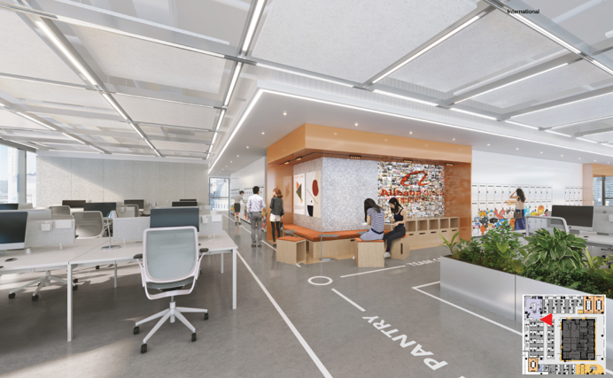A large-scale workplace interior project designed to support collaboration, spatial clarity, and long-term operational flexibility within a high-activity commercial campus. The design balances user experience, circulation efficiency, material durability, and visual coherence to create an open and legible environment for daily use.